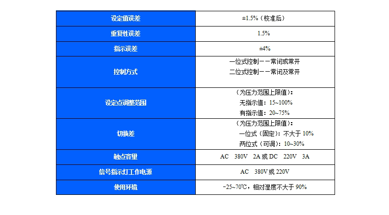 YTK-18/03壓力控制器適用于測量無爆炸危險的流體介質的壓力并進行位式(一位式或兩位式)控制。控制器是借助彈性元件的作用以驅動微動開關工作的壓力控制儀表。控制器具有結構合理、動作準確、使用可靠、開閉頻次高、抗振性好和觸點容量大等特點??刂破靼幢粶y(控)對象的各異,分別制成有壓力指示和無壓力指示(各有普通型和耐蝕型)等多種類型。兩位式控制的控制器設有可供調節切換差的裝置,以使被測(控)介質的上、下切換值調至合適的控壓范圍內。此外,控制器還設有信號指示燈,以使控制電路在斷開或接通的同時發出燈光信號。